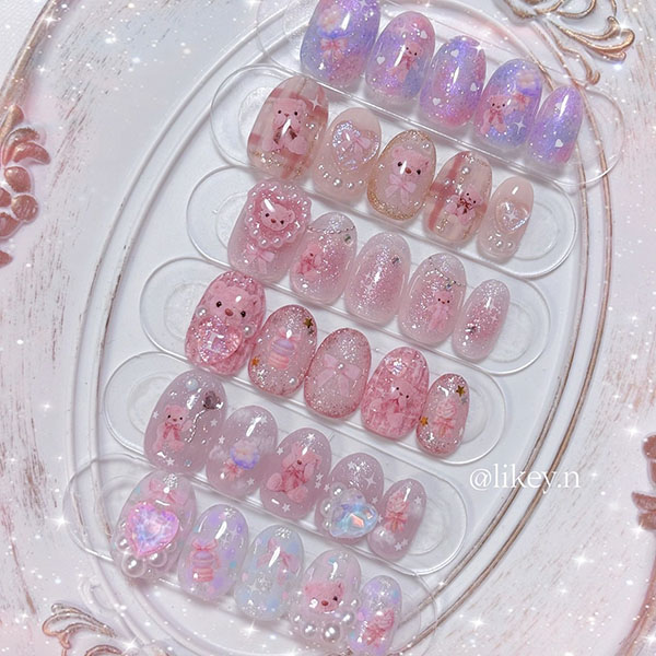 現在はlilygel、nailparfait、emenaのアンバサダーも兼任しています。韓国、うるうる、ピンク、大人ガーリーネイルが得意です。ツメキラを使ったかわいくて時短なデザインを発信できたらうれしいです。